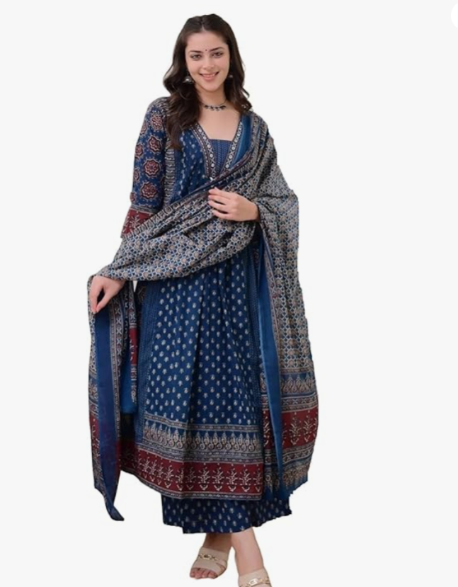 KLOSIA Women’s Rayon Printed Anarkali Kurta Pant Set with Dupatta offers an elegant ethnic look with a comfortable fit. Perfect for festive, casual, or special occasions, it combines style and comfort.