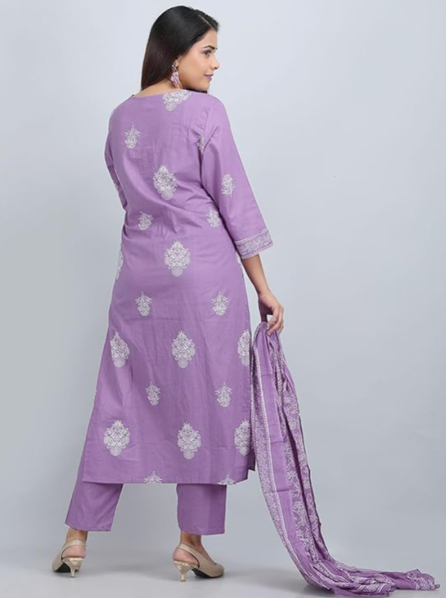 Elevate your ethnic wardrobe with the PARTHVI Women’s Pure Cotton Printed Kurta with Pants and Dupatta Set. Crafted from pure cotton fabric, this suit set offers superior comfort and breathability. The beautiful printed design with intricate handwork adds a rich and traditional touch, making it ideal for weddings, festive celebrations, parties, and special occasions. The set includes a matching kurta, pants, and dupatta, giving you a complete and elegant ethnic outfit. Stylish, comfortable, and graceful, this kurta set is perfect for women who love traditional fashion with a modern appeal.
