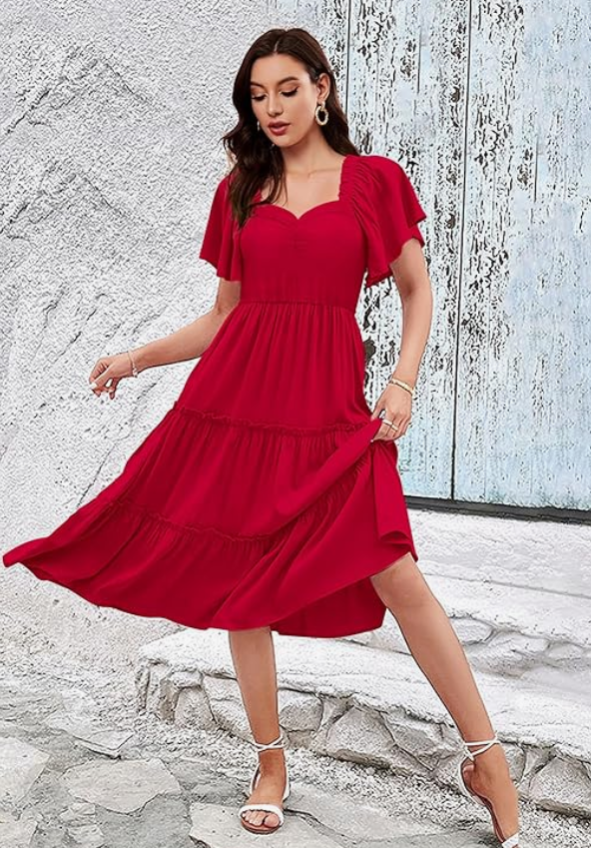 Toochki Women’s Fit & Flare Anarkali Midi Dress is a stylish one-piece dress made from soft rayon fabric. Perfect for casual outings, festive occasions, and everyday ethnic wear with a graceful flowy look.